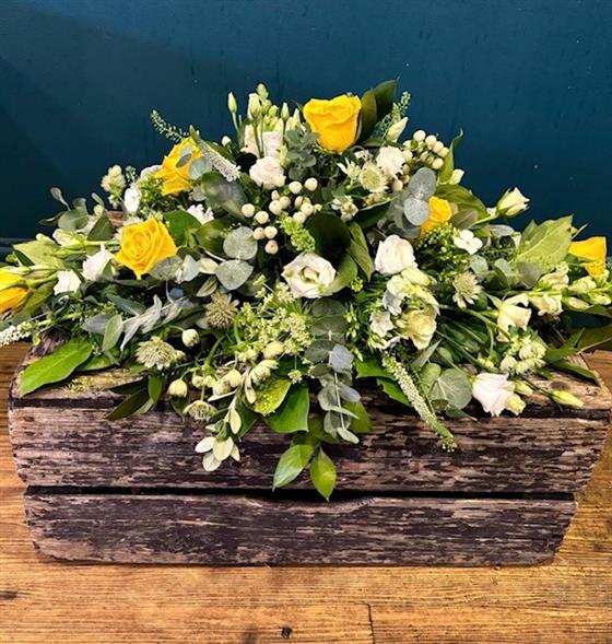 Glorious yellow casket spray
