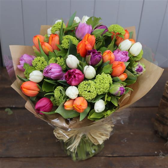 Nothing says spring more than Tulips from Amsterdam! Here we will make up a lovely mix of the finest tulips all wrapped and beautifully packaged in one of our handtied gift boxes.