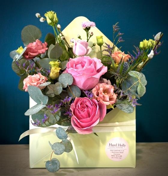 Something a little bit different! This envelope arrangement is full of beautiful flowers in vintage shades, we love these envelopes and they will stay super fresh as they are in oasis!
